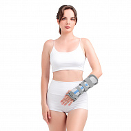 - Формуемая пластиковая шина анатомической формы на застежках-липучках «велкро» препятствует сгибательным движениям в лучезапястном суставе.