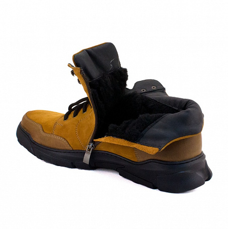 Верх обуви выполнен из натурального нубука; подкладка из натуральной шерсти обеспечит тепло и уют ногам. Полнота регулируется с помощью шнуровки; . Модель также оснащена нескользящей подошвой для безопасных прогулок в гололед.