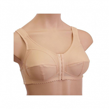 Удобный бюстгальтер с фронтальной застежкой для фиксации протеза молочной железы классического бежевого цвета.