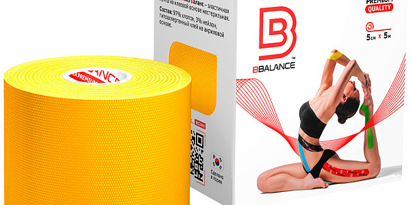 Кинезио тейп Bio Balance Tape 5см х 5м желтый BBTAPE Описание Кинезио Тейпирование помогает при растяжениях и травмах в рамках восстановительной терапии Кинезио тейп способствует уменьшению отека тканей поддержке мышц, сохраняя их полную подвижность улучшению кровообращения и лимфотока! Кинезио тейпинг (kinesio taping) является революционным методом лечения мышечных и суставных травм и ускорения реабилитации, который несет в себе новые, не виданные ранее возможности! Кинесио тейп (kinesio tape) - это эластичная клейкая лента, изготовленная из 100% хлопка и имеющая волнообразный слой гипоаллергенного клея на акриловой основе, который активизируется при температуре тела. Благодаря своей эластичности, кинезио тейпы могут растягиваться 50% от своей изначальной длины. По своей толщине и эластичности приближен к свойствам человеческой кожи. После наложении кинезио тейпа в соответствии с правилами кинезио тейпирования, он обеспечивает поддержку мышц, при этом сохраняется их полная подвижность.Говоря простым языком, принцип работы кинесио тейпов выглядит так: благодаря своей эластичности и волнообразной структуре клеевой поверхности, пластырь тейп приподнимает кожный покров над повреждённым участком тела на микроскопическом уровне, в результате чего, кожный покров оказывает меньшее давление, что способствует значительному снижению боли. Одновременно с этим в подкожных тканях улучшается лимфоток и кровоток, что способствует скорейшему рассасыванию отеков и опухолей. С помощью кинезиологических тейпов Bio Balance Tape можно не только лечить травмы мышц и суставов, но и предотвращать новые, путем наложения кинезио тейпов перед началом физической активности на Ваши наиболее уязвимые мышцы и суставы. В отличие от таблеток и мазей кинезио тейп BBTape работает 24 часа на протяжении 5 дней подряд, непрерывно воздействуя на больной участок, что обеспечивает отличный результат. Хлопковая основа тейпов способствует нормальному дыханию кожи, он не отклеивается в воде, благодаря чему можно принимать душ и вести обычный образ жизни, а также применять его в водных видах спорта! Кинезио тейпы также иногда называют лечебный пластырь или обезболивающий пластырь. Сегодня, на рынке можно найти кинезио тейпы от многих производителей, только качество и цена этих тейпов далеко не всегда одинаковые. Кинезио тейпы BBTape производятся в Корее с соблюдением высших стандартов качества! Назначение Кинезио тейпы лечат и снимают боль при различных травмах суставов и мышц: растяжениях, вывихах, ушибах, лимфедеме, болевых синдромах, отёках, опухолях, Также спортивный кинезио тейп пластырь эффективен при лечении обширных гематом и других травмах и недугах. Кинезио тейп будет незаменим при лимфодренаже или устранении отёков после пластических операций, например, липосакции. Правила применения кинезио тейпа Накладывайте кинезио тейп только на неповреждённый кожный покров, поверхность тела должна быть чистой и сухой. Отмерьте и отрежьте необходимую длину ленты. Закруглите края ленты кинезио, чтобы тейп лучше держался. Первые и последние 5 см ленты всегда накладываются без натяжения!  Постепенно отсоединяя ленту от бумажной основы, наклеивайте на травмированный участок, по всей длине мышцы/связки с натяжением от 0 до 50% от возможного. Никогда не делайте натяжение кинезио тейпа бол