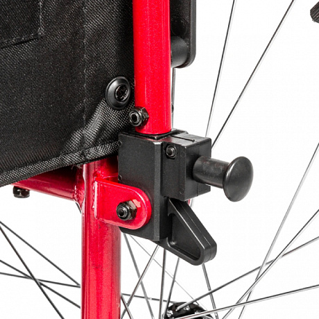 - Съемные колесные антиопрокидыватели, регулируемые по высоте, совмещенные с упором для сопровождающего лица