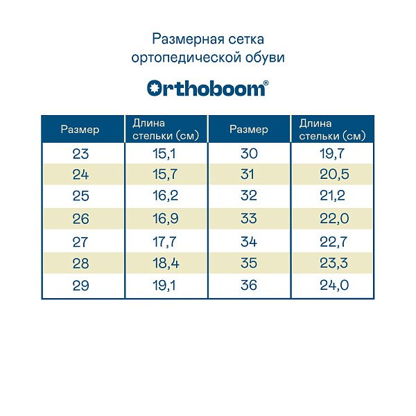Полусапожки ортопедические Ортобум с шерстью для мальчиков 67055-02 ледяной кобальт ОРТОБУМ Верх: текстиль/искусственная кожа Подклад: шерсть Подошва: ТЭП Вид застежки: 3 ремня-липучки Модель с продуманной конструкцией и уникальным дизайном. Инновационная анатомическая колодка, обеспечивающая правильное положение стоп, сводоформирующие стельки, а также другие ортопедические элементы препятствуют развитию плоскостопия или предотвращают дальнейшую деформацию, если патология уже выявлена. За счет широкой раскрываемости модель легко надевается и снимается без дискомфорта. Для верха используется текстиль/искусственная кожа, внутри — шерсть, что гарантирует отличную износостойкость и правильный микроклимат. А нескользящая подошва снижает риск падения на любой поверхности. Зима в такой обуви пройдет с максимальным комфортом независимо от климатических условий. Подбор размера Определите размер по следующей последовательности:     1. Поставьте ногу на чистый лист бумаги.    2. Отметьте крайние границы ступни.    3. Измерьте расстояние между самыми удаленными точками стопы.    4. Найдите соответствующий размер в таблице размеров, расположенной ниже. 67055-02dze /upload/iblock/9b7/9b72071151ea6bbcfb7cb2b7112e0b71.jpg