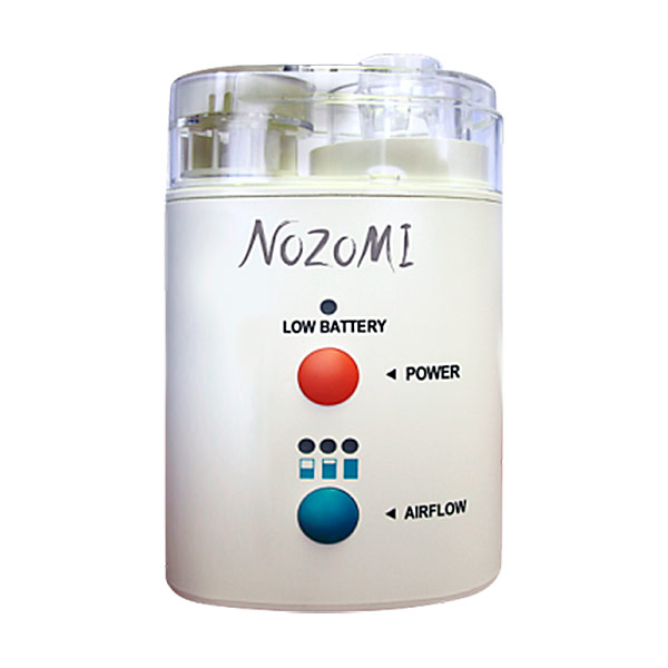 Кнопка регулировки мощности потока воздуха работает в 3-х режимах ингаляции. Прибор бесшумен при работе. В комплект входят маска для детей и взрослых, зарядное устройство от сети и от прикуривателя в автомобиле, в комплект входит сумка для хранения и транспортировки.
