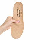 Тонкие ортопедические стельки с динамическим каркасом и большим метатарзальным валиком. Также характеризуются выраженной выкладкой продольных сводов и чашеобразным углублением под пятку. Покрытие стельки изготовлено из натуральной кожи, обладающего высокими впитывающими и противомикробными свойствами, что обеспечивает оптимальный микроклимат в обуви.