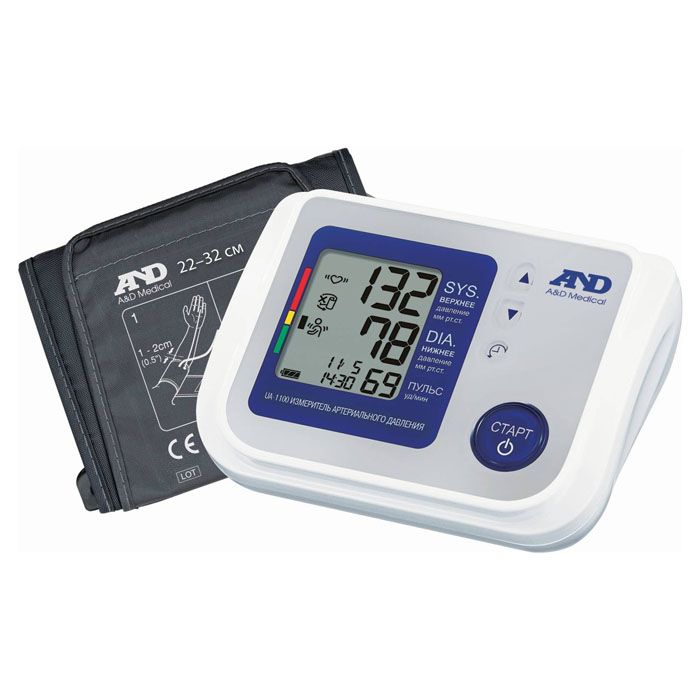 Тонометр UA-1100 автоматический AND Описание Тонометр AnD UA-1100 - автоматический цифровой прибор нового поколения с гипоаллергенной универсальной манжетой размером 23-37 см. Тонометр оснащен интеллектуальной системой Intellitronics, памятью на 90 измерений, календарем и часами. Данный прибор предназначен для применения в качестве индивидуального средства контроля артериального давления и частоты пульса, а также для динамических наблюдений за этими параметрами в медицинских учреждениях. Для простоты использования тексты на приборе и на манжете написаны по-русски. В данной модели достигнут новый стандарт точности и комфорта измерения. Используемая в приборе технология 3А позволила значительно улучшить материалы и конструкцию манжеты, а также усовершенствовать процесс нагнетания и стравливания воздуха. Тонометр AnD UA-1100 особенно подойдет людям с чувствительной кожей и приверженцам эко-материалов (манжета изготовлена без применения латекса и металла). Имеется возможность подключения любой другой манжеты фирмы AnD (SlimFit или E-cuff). Для удобства подключения манжеты к корпусу область вокруг разъема и коннектор манжеты выделены синим цветом. Благодаря запатентованной системе интеллектуального управления Intellitronics тонометр самостоятельно определяет необходимый уровень накачки в соответствии с особенностями вашего давления. В тонометре реализованы новые и удобные для использования функции: индикатор положения манжеты и индикатор движения во время измерения. Прибор оснащен индикатором аритмии, памятью на 90 измерений со значением даты и времени, функцией автоматического расчета среднего давления, функцией диагностики давления по шкале Всемирной организации здравоохранения. Характеристики способ измерения: осциллометрический диапазон измерений (давление): от 0 до 299 мм рт.ст. диапазон измерений (пульс): от 40 до 180 уд/мин предельная погрешность измерения давления: ±3 мм рт.ст. предельная погрешность измерения частоты пульса: ±5 % от показания дисплей: 3-х строчный цифровой дисплей интеллектуальные системы: intellitronics индикатор аритмии: да индикатор уровня давления по шкале ВОЗ: да функции календаря и часов: да память: 90 измерений с записью даты и времени индикатор движения: да индикатор правильности положения манжеты: да размер манжеты: стандартная 23-37 см источник питания: 4 элемента типа AA или сетевой адаптер размеры 140 х 60 х 105 мм вес: 265 г. (без элементов питания) Комплект поставки тонометр AnD UA-1100 манжета SlimFit Cuff для руки от 23 до 37 см элементы питания типа АА - 4 шт. миниатюрный сетевой адаптер чехол (кейс для хранения и переноски) инструкция на русском языке гарантийный талон UA-1100dze /upload/iblock/db7/db72a154240726d930988865033bdd40.jpg